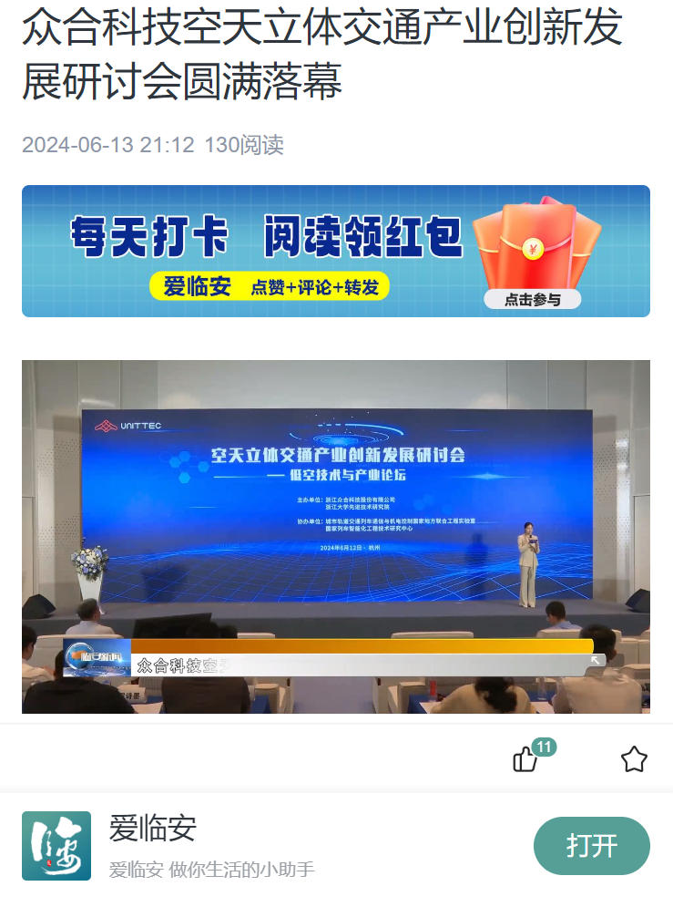 研討會(huì)由浙江眾合科技股份有限公司攜手浙江大學(xué)先進(jìn)技術(shù)研究院聯(lián)合舉辦。會(huì)上,眾合科技與鳶飛科技聯(lián)合發(fā)布了UniSpace低空綜合服務(wù)平臺(tái),并同步發(fā)布了《眾合科技空天產(chǎn)業(yè)行動(dòng)計(jì)劃》,展現(xiàn)了眾合科技致力于構(gòu)建“車路云協(xié)同+低空+低軌衛(wèi)星”的立體交通產(chǎn)業(yè),實(shí)現(xiàn)空地一體、天地互聯(lián)、立體空間的協(xié)同發(fā)展的堅(jiān)定決心。