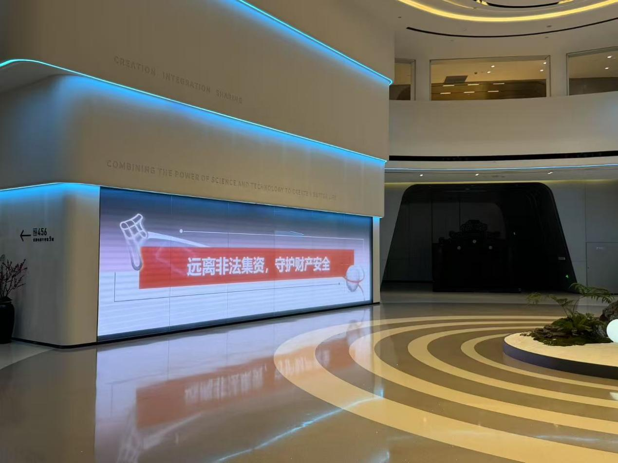 標(biāo)語(yǔ)警示:公司青山湖園區(qū)辦公大樓LED屏滾動(dòng)播放“遠(yuǎn)離非法集資,守護(hù)財(cái)產(chǎn)安全”“高利誘惑是陷阱,理性投資保平安”等標(biāo)語(yǔ),強(qiáng)化警示效果。