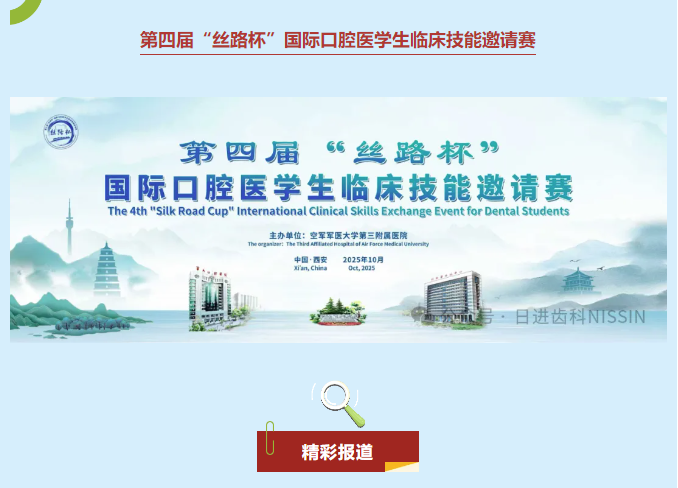 2025年10月16日,由空軍軍醫(yī)大學(xué)第三附屬醫(yī)院主辦、日進(jìn)齒科材料(昆山)有限公司支持的第四屆“絲路杯”國際口腔醫(yī)學(xué)生臨床技能邀請賽在西安市曲江國際會議中心隆重舉行。
