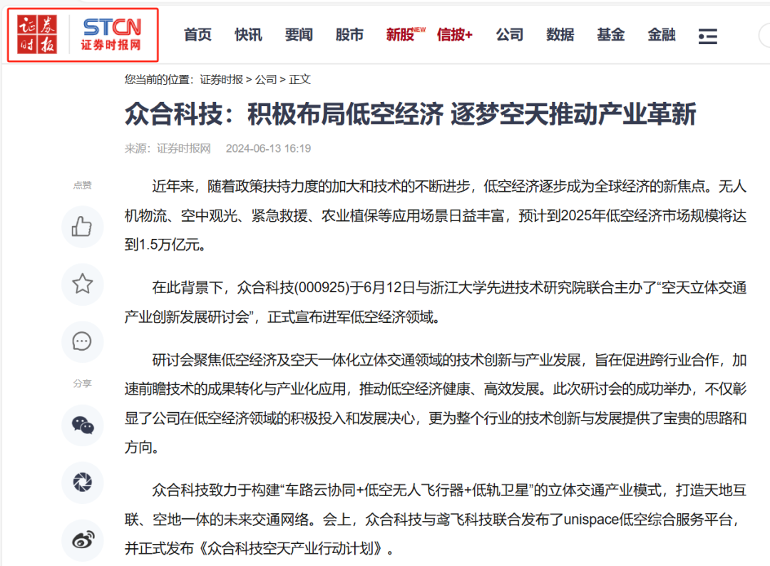 研討會(huì)由浙江眾合科技股份有限公司攜手浙江大學(xué)先進(jìn)技術(shù)研究院聯(lián)合舉辦。會(huì)上,眾合科技與鳶飛科技聯(lián)合發(fā)布了UniSpace低空綜合服務(wù)平臺(tái),并同步發(fā)布了《眾合科技空天產(chǎn)業(yè)行動(dòng)計(jì)劃》,展現(xiàn)了眾合科技致力于構(gòu)建“車路云協(xié)同+低空+低軌衛(wèi)星”的立體交通產(chǎn)業(yè),實(shí)現(xiàn)空地一體、天地互聯(lián)、立體空間的協(xié)同發(fā)展的堅(jiān)定決心。