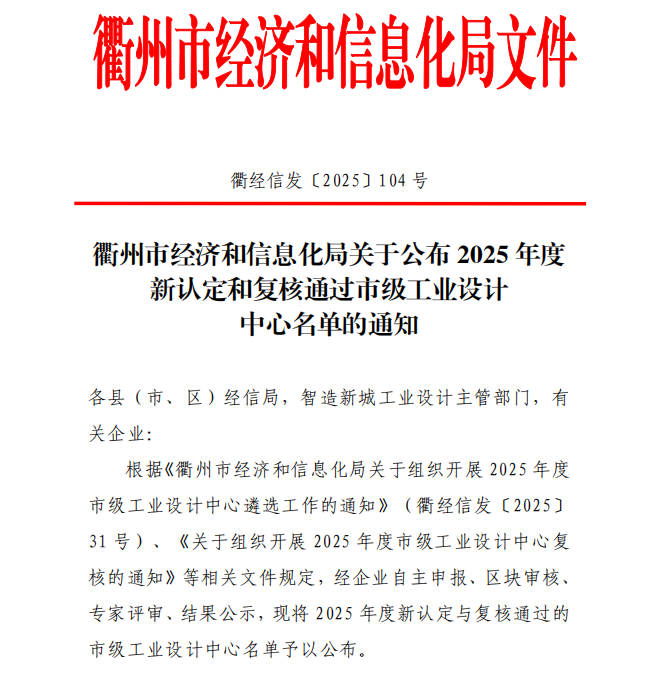近日,衢州市經(jīng)濟(jì)和信息化局公布了2025年度新認(rèn)定和復(fù)核通過(guò)市級(jí)工業(yè)設(shè)計(jì)中心的名單,根據(jù)《衢州市經(jīng)濟(jì)和信息化局關(guān)于組織開(kāi)展2025年度市級(jí)工業(yè)設(shè)計(jì)中心遴選工作的通知》《關(guān)于組織開(kāi)展2025年度市級(jí)工業(yè)設(shè)計(jì)中心復(fù)核的通知》等相關(guān)文件規(guī)定,經(jīng)企業(yè)自主申報(bào)、區(qū)塊審核、專家評(píng)審等一系列流程,浙江海納半導(dǎo)體股份有限公司(以下簡(jiǎn)稱“海納股份”)成功通過(guò)衢州市2025年度市級(jí)工業(yè)設(shè)計(jì)中心復(fù)核。